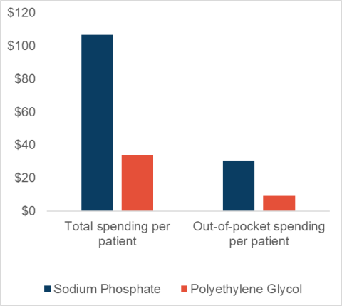 Figure 2. Total and Out-of-Pocket Per Person Spending on Sodium Phosphate Medications was More than 3 Times Higher than PEG Medications