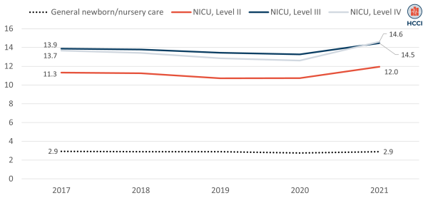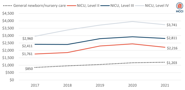 Figure 3. Average Daily Inpatient Spending for Newborn Care Admissions by Level of Care (2017-2021)